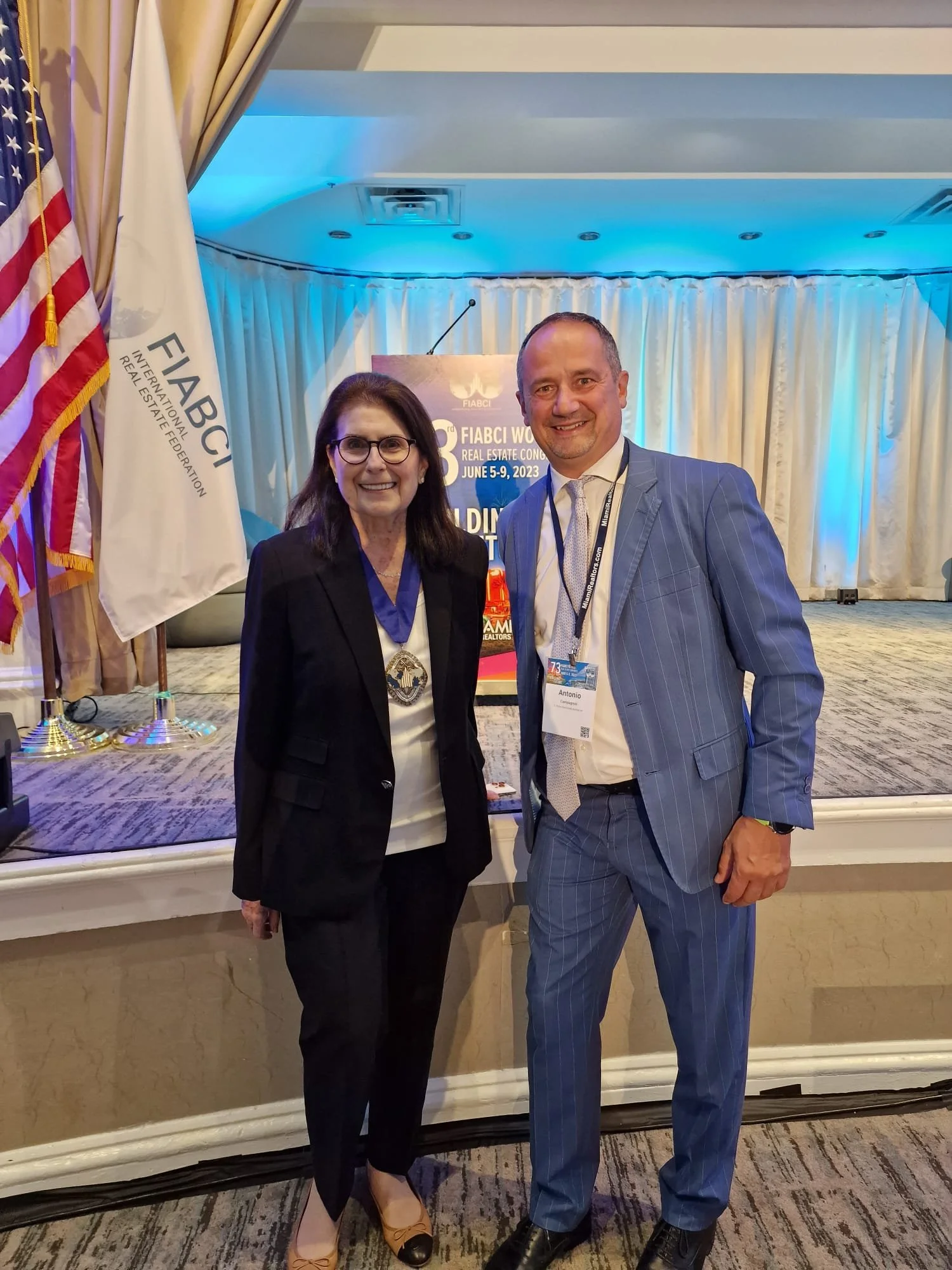 Nella foto il Presidente Mondiale FIABCI, Susan Greenfield insieme al Segretario Generale di ISIVI e Board Member FIABCI, Antonio Campagnoli.