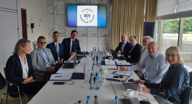 Nella foto della riunione di Comitato REV, i partecipanti partendo dal basso a sinistra: Emmanuelle Gauthier (CEIF-FNAIM, Francia), Ivars Strautiņš (LIVA, Lettonia), Luke Brucato (ISIVI, Italia), Alexander Weber (IVD, Germania), Kostantinos Pallis (AVAG, Grecia), Daniel Manaţe (ANEVAR, Romania), Bernhard Bischoff (BVS, Germania, Pat Davitt (IPAV, Irlanda), Danijela Ilić (NAVS, Serbia)